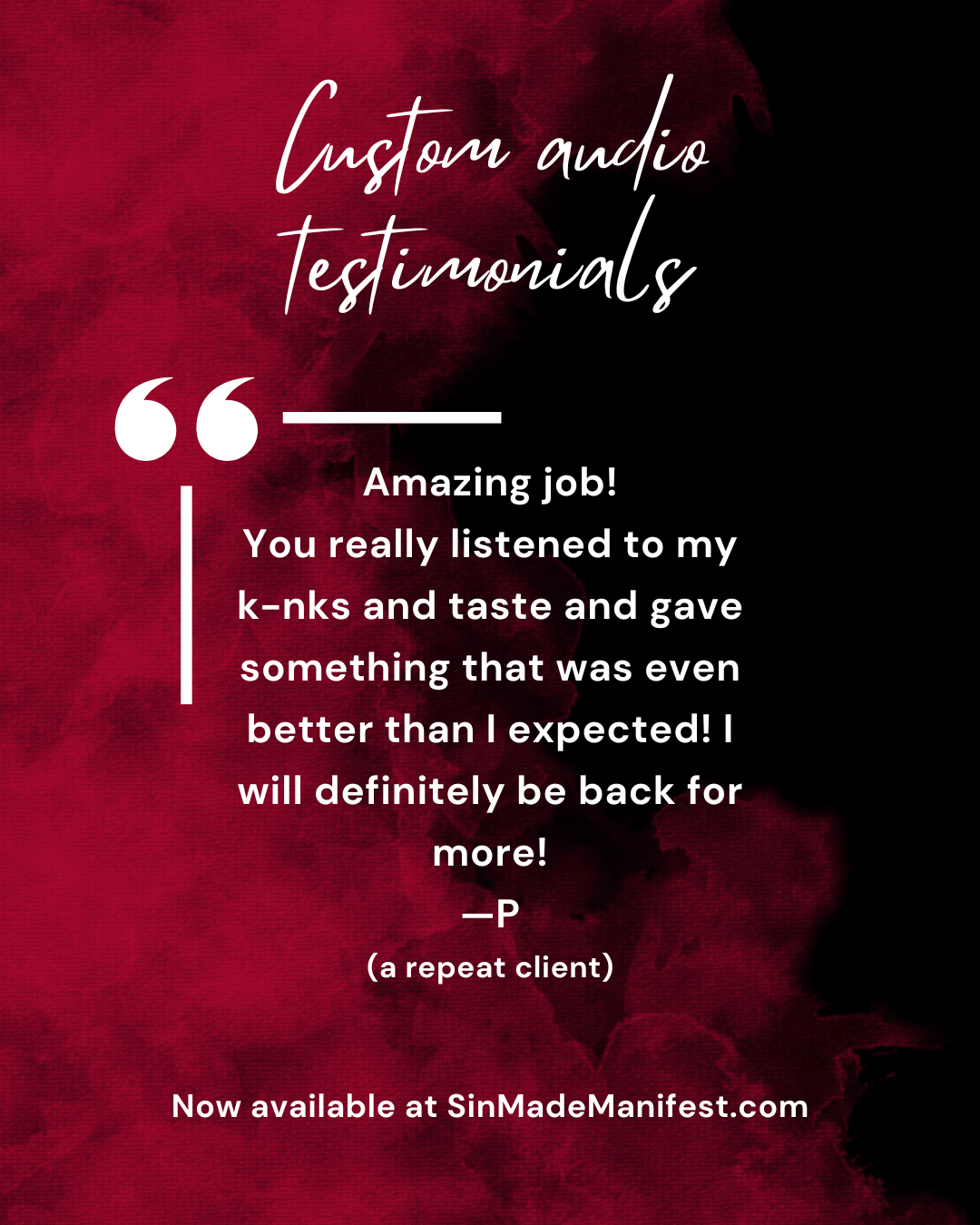 I also have an assortment of additional fees for my audios, depending on what you may need or desire.